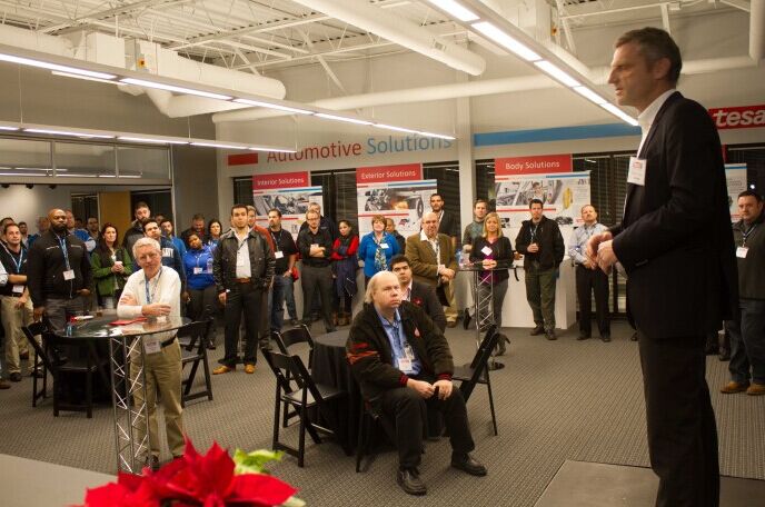 After decades of providing product and service solutions to the Automotive industry on a global basis, business leaders within the tesa Automotive business segment made a strategic decision to open a collaboration and solution center to optimally position tesa personnel to serve the near-term and long-term needs of customers in the industry’s epicenter. The new solution center, centrally located in Novi, formally opened its doors on December 3, 2015, with an open house event hosted by the tesa Automotive team.