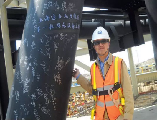 PPG 輕工業涂料部同事2011年在上海迪士尼度假區帶有眾多員工簽名的基樁旁留念