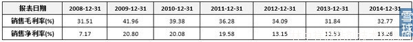 從 毛利率的發展變化, 6年平均達到35.4%,近三年維持在32.9%的高水準(同業對比見下文業務部分), 凈利潤6年均值15.22%,近三年平均值為12.98%。