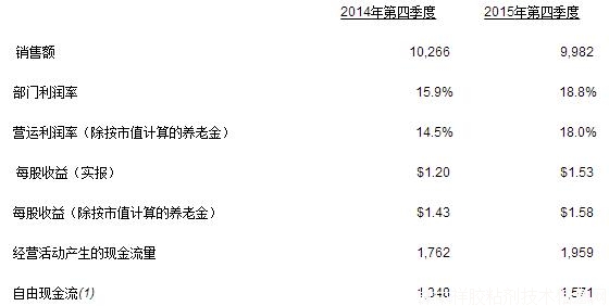 霍尼韋爾于2016年1月29日公布了其2015年第四季度及全年的財(cái)務(wù)業(yè)績(jī),具體如下: