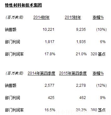 第四季度部門利潤(rùn)增長(zhǎng)9%,部門利潤(rùn)率上升380個(gè)基點(diǎn),至20.3%,主要得益于扣除通貨膨脹因素后的生產(chǎn)效率的提升、商業(yè)優(yōu)化、以及樹(shù)脂和化工產(chǎn)品原材料價(jià)格傳遞(定價(jià)模式對(duì)利潤(rùn)起到保護(hù)作用)的有利影響。