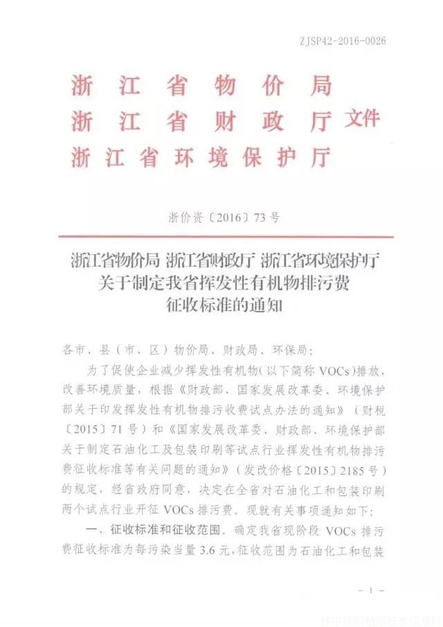 浙江正式發(fā)文試點(diǎn)征收VOCs排污費(fèi),全國第九個(gè)省開征(2016.7.1日起執(zhí)行)