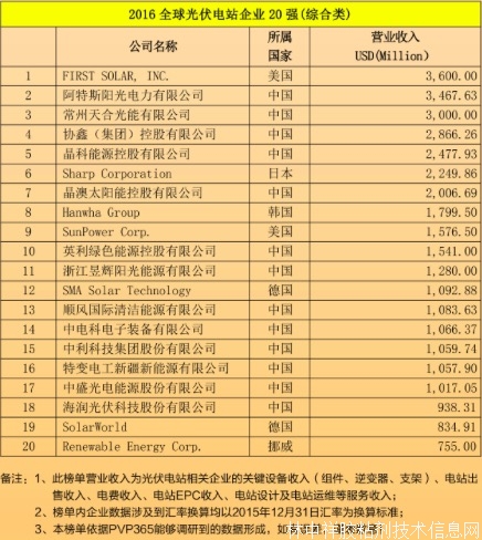 本次“2016全球光伏電站20強排行榜”由“2016全球光伏電站企業20強排行榜(綜合類)”、“2016中國光伏電站企業20強排行榜(綜合類)”、“2016中國光伏電站投資企業20強”、“2016中國光伏電站EPC總包企業20強”、“2016中國光伏組件企業20強”、“2016中國光伏逆變器企業20強”、“2016中國光伏支架企業20強”七大類榜單組成。榜單根據上一年度全球光伏電站行業各企業全年主營產品經營收入、出貨量、并網裝機規模等財務數據的高低排出先后名次。
