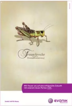 2008年,CVC資本取得了贏創25.1%股權,分析師計算的CVC資本投資額約為24億歐元,雖然這一交易實際上在2004年就受到受到了公開批評,有德國立委將CVC資本比作一只蝗蟲,但2008年達成協議后雙方仍認為這是一個雙贏的結果,贏創為此還特別發布了一個微笑蝗蟲的宣傳頁,表示與新伙伴CVC的合作前景一片光明。