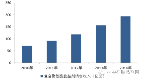 2013年度、2014年度,復合聚氨酯膠粘劑行業的銷售收入分別為156.5億元、193.7億元。