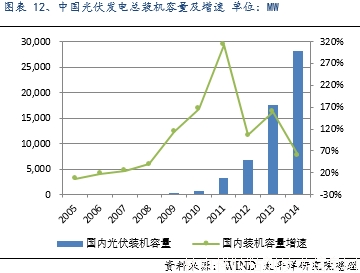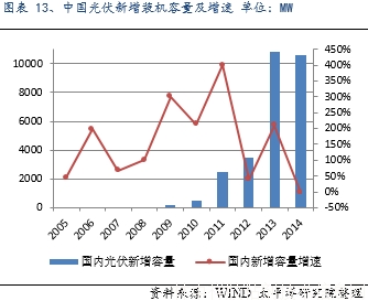 隨著歐美雙反的塵埃落定,受政策引導和市場驅動等因素共同作用,2013年我國光伏行業出現回暖的跡象,新增光伏發電并網裝機11.8GW,2014年新增光伏發電裝機容量10.6GW,2015年光伏前三季度新增裝機10.5GW,同比增長177%,全年將完成新增裝機17.8-20.0GW,預計“十三五規劃”將設定2016-2020年均裝機目標20GW以上,到2020年光伏發電總裝機容量將達到150GW,按照1MW組件需要結構膠粘劑1.5噸計算,光伏行業對粘膠劑的年需求為30,000噸。