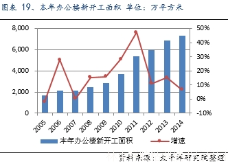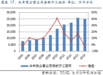 建筑幕墻膠主要應用于商業地產,如高檔寫字樓、大型購物中心、高檔酒店、高檔公寓等領域。2014年我國辦公樓投資額達到5,641.19 億元,同比增長21.25%,2005-2014年間復合增長率達到24.89%;2014年商業營業用房投資額達到14,346.25億元,同比增長20.10%,2005-2014年間復合增長率達到24.20%。商業地產投資額及新開工面積的迅猛增長將大幅帶動有機硅膠粘劑的需求量。