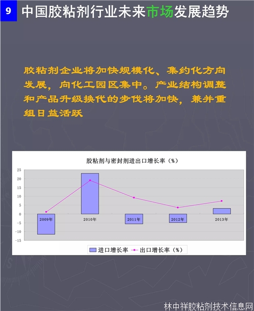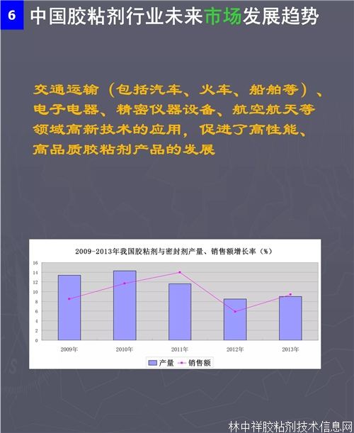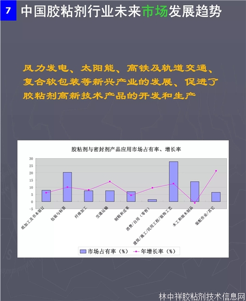 未來(lái)全球膠粘劑市場(chǎng)、生產(chǎn)、消費(fèi)重心將轉(zhuǎn)向亞洲,轉(zhuǎn)向中國(guó)。汽車(chē)、新能源(太陽(yáng)能和風(fēng)力發(fā)電)、軌道交通、電子電器、軟包裝等新興領(lǐng)域?qū)?dòng)中國(guó)膠粘劑行業(yè)的快速發(fā)展。“十三五”規(guī)劃將要求我們更加關(guān)注民生領(lǐng)域,發(fā)展高新技術(shù),重視節(jié)能環(huán)保,促進(jìn)膠粘劑和膠粘帶產(chǎn)品具有雙重性能(使用性和環(huán)保性),堅(jiān)持可持續(xù)發(fā)展。科技創(chuàng)新、技術(shù)進(jìn)步、合作共贏是未來(lái)發(fā)展的主流,熱熔型膠粘劑、有機(jī)硅膠粘劑、聚氨酯膠粘劑、乳液型丙烯酸酯壓敏膠等品種的應(yīng)用領(lǐng)域不斷擴(kuò)展,是未來(lái)增長(zhǎng)熱點(diǎn)。