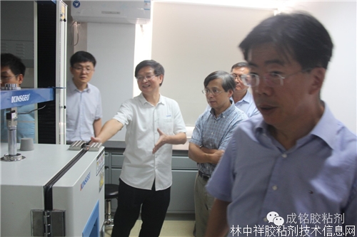 15:00,專家學者們抵達成銘科技園,他們首先被園區內美麗的環境所吸引,稱贊成銘科技園是“花園式工廠”。在簡短的歡迎儀式后,專家學者們在成銘熱熔膠博物館館長王賢勝先生的導領講解下,參觀了成銘熱熔膠博物館,在參觀的過程中便對博物館的布局之合理、內容之豐富連連稱贊,并為博物館提詞寄語留念。之后,在成銘公司鄧小華副總經理的導引講解下參觀了成銘創新中心,專家們對于設備齊全、功能全面的成銘創新中心給予了高度評價,并提出了一些好的建議。由于專家們對博物館和成銘創新中心有著濃厚的興趣,經過專家們的一致同意,座談會的時間整整推遲了一個小時。
