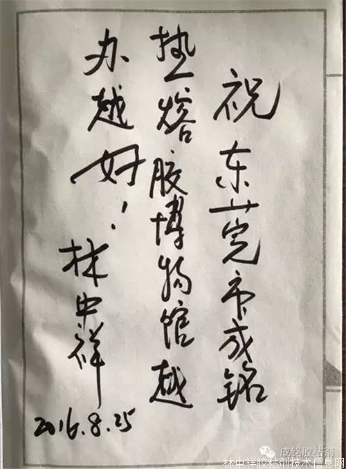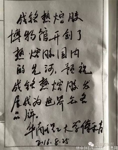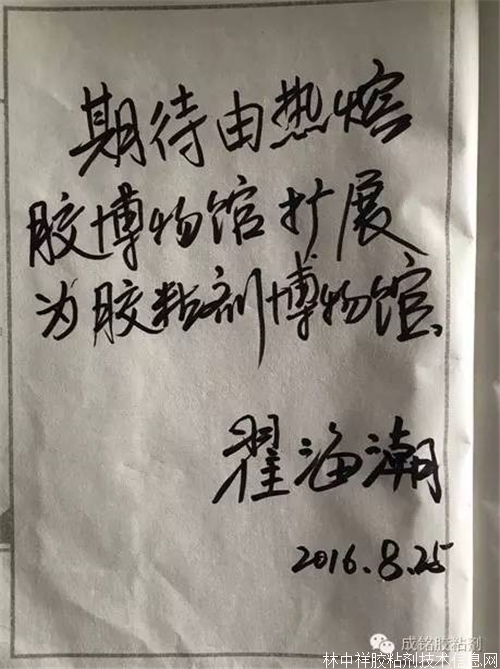 2016年8月25日,中國膠粘劑和膠粘帶行業年會剛剛在廣州落下帷幕,成銘科技園就迎來了西卡首席科學家曲軍博士、浙江大學范宏教授、上海康達新材陸巍總經理、天山新材文人企業家翟海潮先生、南京林業大學林中祥教授、華南理工大學傅和青教授、亞利桑那化學石一峰博士、亞利桑那化學田建軍博士、萬事達膠帶熱熔膠應用專家程世君先生等一批中國膠粘劑行業知名的專家學者。據悉,專家學者們此行的目的是專程來參加成銘熱熔膠博物館答謝活動的。
