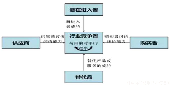 替代品是指那些與客戶(hù)產(chǎn)品具有相同功能的或類(lèi)似功能的產(chǎn)品。由于膠粘劑的應(yīng)用范圍非常廣泛,功能性強(qiáng),是國(guó)民經(jīng)濟(jì)和多種行業(yè)不可或缺的中間原料,是人民生活的必需品,因此膠粘劑產(chǎn)品替代性競(jìng)爭(zhēng)的壓力較小。
