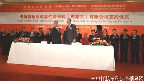 卡博特公司宣布,其全資子公司卡博特(中國)投資有限公司已經與內蒙古恒業成有機硅有限公司(以下簡稱“恒業成”)簽署合資協議,共同在中國生產氣相二氧化硅。新公司被命名為卡博特恒業成高性能材料(內蒙古)有限公司,其中卡博特與恒業成分別持有80%和20%的股份。協議簽署儀式于9月12日在上海瑞金洲際酒店舉行。卡博特公司總裁兼首席執行官柯尚恩、中國石油和化學工業聯合會李壽生會長、烏海市市長史萬鈞、烏海市副市長陳文庫、浙江中成控股集團有限公司董事長王永泉以及其他相關政府部門領導見證了簽字儀式。