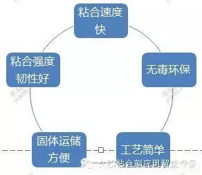 把膠粘劑加熱熔融成流體,涂布在被粘基材表面,將2個被粘物貼合,冷卻后形成粘接,之后利用空氣中的濕氣或被粘基材中的微量水分及其他含活潑氫的化合物與一NCO基團發生反應、擴鏈,生成交聯網狀結構且具有高內聚力的聚合物,使粘接力進一步增強。