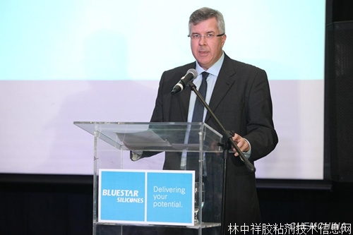 圖為藍星有機硅巴西分公司總經(jīng)理盧卡斯•傅立葉(Lucas Freire)在慶典儀式上致辭