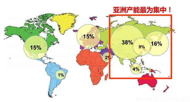 67%的全球產能集中在亞洲,其中中國貢獻38%