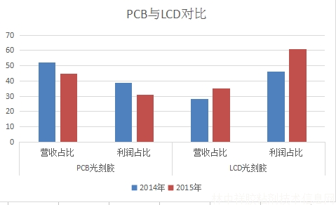 從PCB業務和LCD業務對比看,公司的主營構成向 LCD 專用化學品傾斜。2016年2月擴張產能的募資,減少400 噸PCB 光刻膠光引發劑產能,新增15 噸LCD 光刻膠光引發劑產能,亦可看出公司未來的發展方向為LCD光刻膠(半導體光刻膠占公司總營收不足3%,不作具體分析)。
