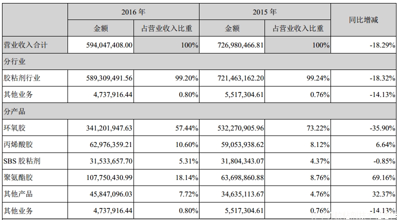 報告期內,公司無溶劑聚氨酯復膜膠銷售保持快速增長,產品產銷量均有一定突破。目前,公司在國內品牌的無溶劑復膜膠市場上占有率領先。