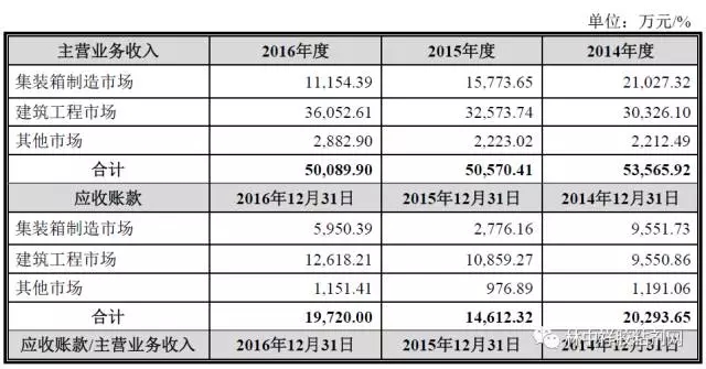 2014-2016年,集泰化工應(yīng)收賬款分別為1.92億元、1.35億元、1.82億元,占當(dāng)期流動資產(chǎn)的比例分別為59.79%、46.70%、59.71%。集泰化工解釋稱,主要系2016年10月集裝箱市場訂單量逐漸增加,而公司給予集裝箱客戶信用期較長,導(dǎo)致應(yīng)收賬款大幅增加。