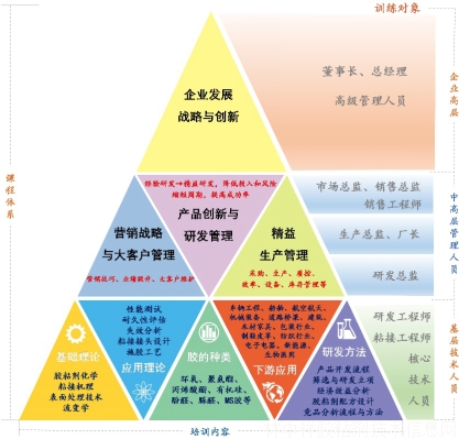 針對目前國內(nèi)垂直于膠粘劑行業(yè)的職業(yè)培訓比較缺乏的問題,膠之道組織行業(yè)內(nèi)一流的專家、教授和企業(yè)技術精英,通過為企業(yè)研發(fā)/生產(chǎn)/市場人員、技術骨干、中層核心人員和管理層分別提供從膠粘劑基礎理論、創(chuàng)新產(chǎn)品設計、研發(fā)流程管理、生產(chǎn)與營銷管理到應用實踐等各環(huán)節(jié)的一流培訓課程,為企業(yè)培養(yǎng)創(chuàng)新型的產(chǎn)品研發(fā)與管理人才,提升企業(yè)的研發(fā)水平和技術創(chuàng)新能力。為企業(yè)管理層提供國際一流的研發(fā)、生產(chǎn)、市場、戰(zhàn)略等企業(yè)管理課程,將全球最先進的企業(yè)管理理念和精華傳導到中國膠企的管理層。