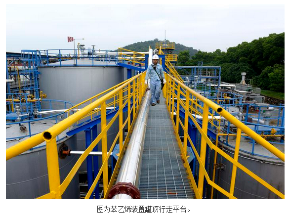 廣州石化化工二部聚苯乙烯裝置有9個原料罐,操作人員每周都要對每個罐的罐頂進行兩次安全附件的檢查,但由于每個罐原設計都為直梯且沒有相連,每次檢查都需要上下爬直梯多次,費時費力。為確保罐區安全,該部利用本次大修改造機會,增設了一個原料罐區行走平臺,利用平臺將各原料罐頂連接起來,大大方便了操作人員上罐檢查作業。