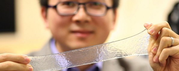 這種類似橡膠的材料主要成分是水,可以植入一系列的電子設(shè)備,比如導電線,半導體芯片,LED燈以及溫度傳感器。