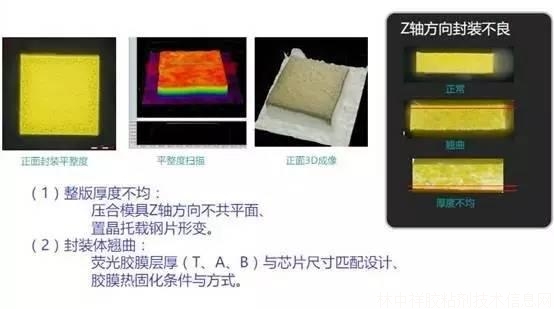 其次是垂直方面會發(fā)生一些不良。包括芯片固化以后發(fā)生的翹曲,電極方向漏光等等,這主要與置晶時候采用的供面性有關(guān)系。