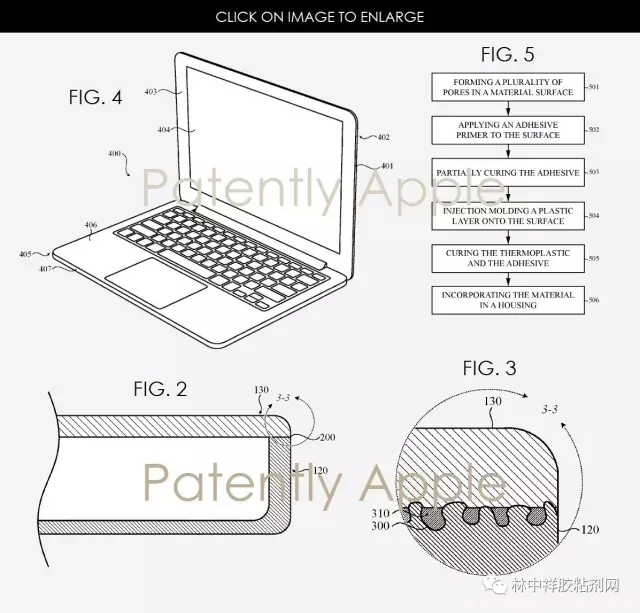 專利申請材料稱,“粘合兩種材料的粘合劑強度,可能在一定程度上提高電子產品的抗沖擊性,使產品更結實、耐用。”